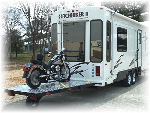 The Cruiserlift System is the ultimate motorcycle lift system for Class-A diesel, or selected Class-A gas motor coach's. The system allows for the transportation of up to a 1000 pound motorcycle, and also allow for the flat towing of a 6000 pound vehicle.